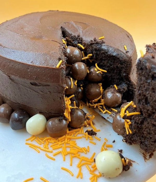 Sprinkle desiccated coconut, crushed and chopped White Choc Pineapple FruChocs over the melted chocolate
