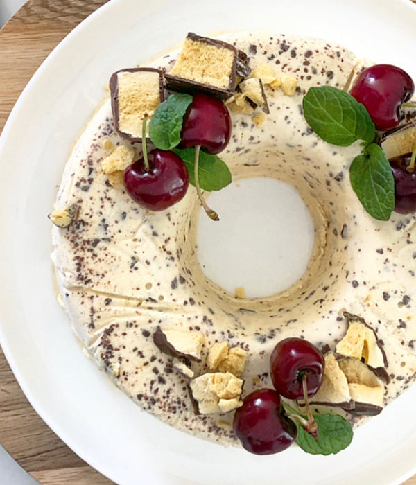 Turn out onto a lightly floured surface, add chopped violet crumble pieces and gently bring together to form a ball.